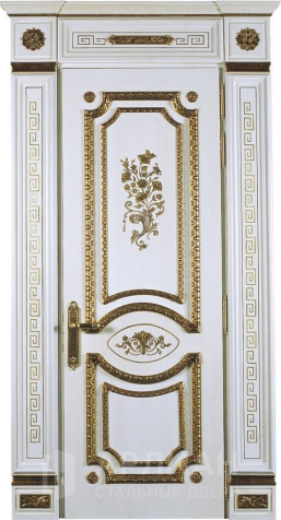 Парадная дверь с золотой патиной и фрамугой №408