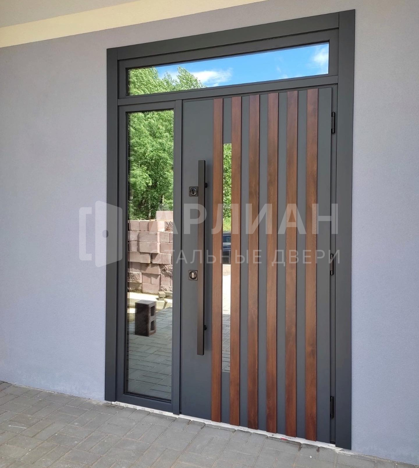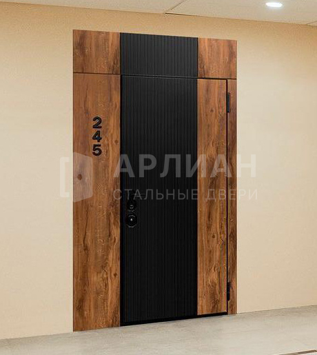 Металлическая дверь с отделкой МДФ темная и с фрезерованной панелью МДФ №550