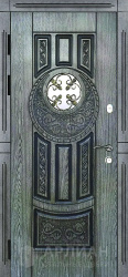 Фото «Одностворчатая входная дверь из массива с элементами ковки №5»
