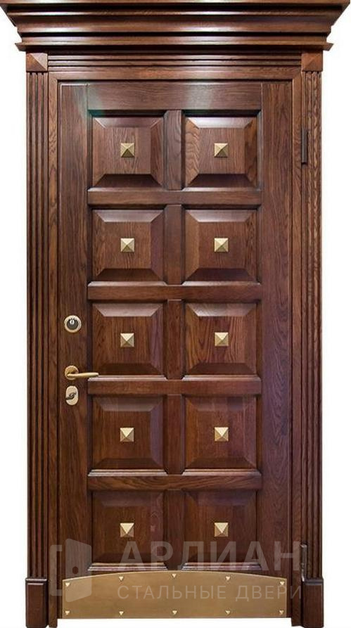Уличная входная дверь из массива с двух сторон для загородного коттеджа №402