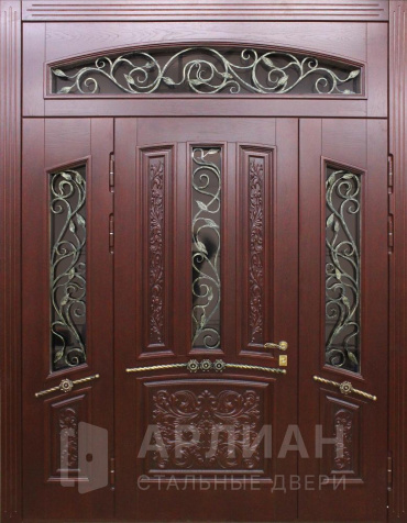 Высокая арочная дверь с фрамугой и кованой решеткой №12